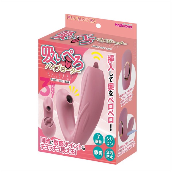 吸いぺろバイブローターピンクは、マジックアイズ(Magic Eyes)製の多機能クリトリス特化バイブレーター。超やわらかシリコンネックを採用したV字型デザインで、吸引(チュパチュパ吸い付き)+舌ペロペロ舐め+振動の三点同時責めが最大の特徴。ピンクの可愛いボディで、7種類の振動パターン搭載(強弱・リズム違い)。生活防水(丸洗いOK)で静音設計、USB充電式で繰り返し使用可能。全長約125mm×幅99mm×厚36mmとコンパクト、価格は約2,500〜4,300円(セール時2,488円前後)とコスパ抜群。クリ吸引+舐め振動のコンボで、外イキ・クリ開発に最適な2025年人気の新感覚ローターだよ。